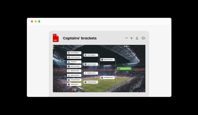 You can export your brackets and download the brackets as an image or a PDF file, to quickly and easily share it with other people or to post it on your website or social media accounts. With this feature, ensuring that your brackets are always accessible and presentable becomes effortless, enhancing the overall user experience and interaction.