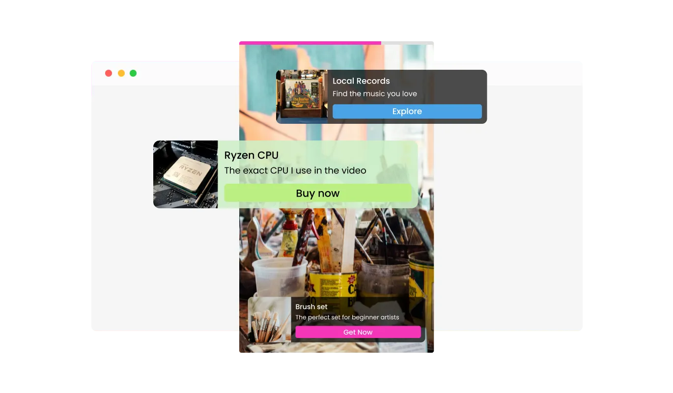 The Interactive Video widget allows you to embed clickable links directly onto your videos. This feature provides an easy way to guide viewers to additional content, products, or services seamlessly. By integrating links, you can create a more engaging and interactive viewing experience, helping drive traffic to specific pages and boosting conversions.