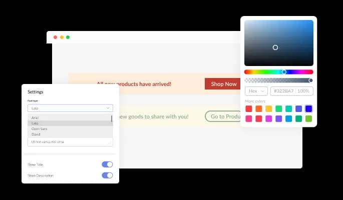 The Notification Bar widget is easy to use and requires no coding knowledge. Our intuitive dashboard with the drag-and-drop feature will enable you to customize the widget any way you’d like to with just a few simple clicks.
