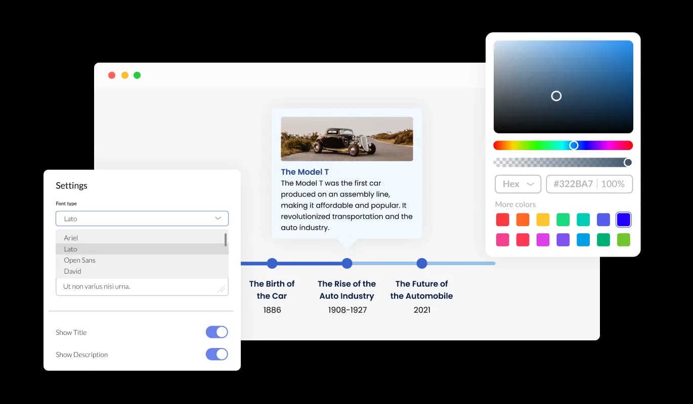 Simply copy and paste a code snippet into the HTML of your webpage to integrate the Timeline widget on your website. It is also self-updating, so any modifications you make to the Timeline Editor will be automatically reflected on your website without the need for any further manual updates.